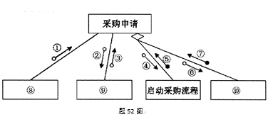 某公司采购管理系统软件中采购申请部分的模块结构图如题52图所示。模块之间未标明数据流和控制流如下: