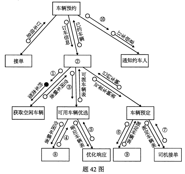 请写出题42图中的数字①②③④⑤⑥⑦⑧⑨⑩所对应的模块名和数据流名前的大写字母。