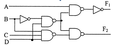 按照图,从F1开始反推,先经历了非门,然后经历了一个与门,这个与门一个入口是A,另一个入口来自另一个与门,这个与门一个入口来自一个非门,而非门来自B。与门的另一个入口来自D。