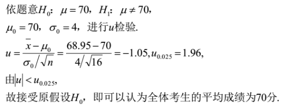 作者:高老师 时间:2024-07-29 浏览 1 【正确答案】:【题目解析】:题中,16位考生的成绩为正态总体中抽取的样本,方差已知为16,因此适用于方差已知的单个正态总体均值检验,即使用u检验法,计算统计量u判断是否接受原假设。 📱 扫码体验刷题小程序 扫一扫使用我们的微信小程序