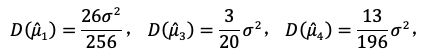 无偏估计量的方差越小越有效。总体方差为σ²,样本容量为4,故
