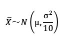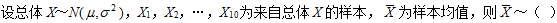 总体X服从正态分布,那么样本均值也服从正态分布。样本均值的数学期望与总体的期望相同,样本均值的方差为总体方差的1/n。总体的均值E(X)=μ,总体的方差D(X)=σ²。本题,样本容量n=10,样本均值的期望和方差分别为: