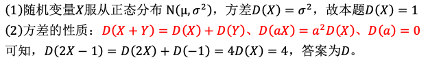 已知随机变量X~N(0,1),则随机变量Y=2X-1的方差为( ) 作者:高老师 时间:2024-07-28 浏览 3 已知随机变量X~N(0,1),则随机变量Y=2X-1的方差为( )A、1B、2C、3D、4【正确答案】:D【题目解析】: 📱 扫码体验刷题小程序 扫一扫使用我们的微信小程序