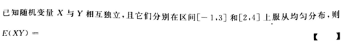 作者:高老师 时间:2024-07-28 浏览 1 A、3B、6C、10D、12【正确答案】:A【题目解析】:(1)随机变量Z~U(a,b) ,E(Z)=(a+b)/2故本题E(X)=1,E(Y)=3(2)X,Y相互独立,E(XY)=E(X)×E(Y)=3答案为A 📱 扫码体验刷题小程序 扫一扫使用我们的微信小程序
