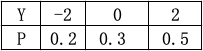 Y的可能取值有3种:-2、0、2P{Y=-2}=P{X=0,Y=-2}+P{X=2,Y=-2}=0.1+0.1=0.2P{Y=0}=P{X=0,Y=0}+P{X=2,Y=0}=0.1+0.2=0.3P{Y=2}=P{X=0,Y=2}+P{X=2,Y=2}=0.2+0.3=0.5故Y的分布律为