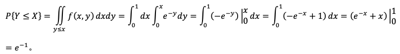 P{Y≤X}。 作者:高老师 时间:2024-07-28 浏览 0 设随机变量X服从[0,1]上的均匀分布,随机变量Y服从参数为1的指数分布,且X与Y相互独立。求:P{Y≤X}。【正确答案】:【题目解析】:如下图,对y从0到x积分,对x从0到1积分。 📱 扫码体验刷题小程序 扫一扫使用我们的微信小程序