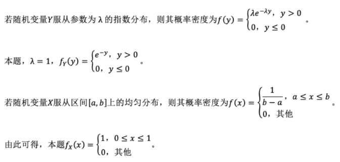 设随机变量X服从[0,1]上的均匀分布,随机变量Y服从参数为1的指数分布,且X与Y相互独立。求: