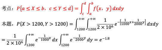 两个电子元件的使用寿命均大于1200小时的概率 作者:高老师 时间:2024-07-28 浏览 1 某种装置中有两个相互独立工作的电子元件,其中一个电子元件的使用寿命X(单位:小时)服从参数1/1000的指数分布,另一个电子元件的使用寿命y(单位:小时)服从参数1/2000的指数分布.试求:两个电子元件的使用寿命均大于1200小时的概率【正确答案】:【题目解析】: 📱 扫码体验刷题小程序 扫一扫使用我们的微信小程序