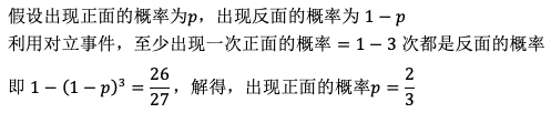 每次投掷时出现正面的概率. 作者:高老师 时间:2024-07-28 浏览 1 重复投掷一枚不均匀的硬币3次,若至少出现一次正面的概率为26/27.求:每次投掷时出现正面的概率.【正确答案】:【题目解析】: 📱 扫码体验刷题小程序 扫一扫使用我们的微信小程序
