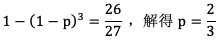 每次投掷时出现正面的概率。 作者:高老师 时间:2024-07-28 浏览 0 重复投掷一枚不均匀的硬币3次,若至少出现一次正面的概率为26/27.求:每次投掷时出现正面的概率。【正确答案】:【题目解析】:考点:对立事件“至少出现一次正面”的对立事件为“三次全是反面”,根据题目,设出现正面的概率为p,则 📱 扫码体验刷题小程序 扫一扫使用我们的微信小程序