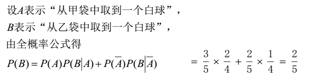 作者:高老师 时间:2024-07-28 浏览 1 【正确答案】:【题目解析】:分为两种情况:(1)从甲袋中取一只白球放入乙袋:概率为3/5,此时乙袋中共4个球,白球2个,任取一个为白球的概率是1/2(2)从甲袋中取一只红球放入乙袋:概率为2/5,此时乙袋中共4个球,白球1个,任取一个为白球的概率是1/4故概率为:P=(3/5)×(1/2)+(2/5)×(1/4) 📱 扫码体验刷题小程序 扫一扫使用我们的微信小程序