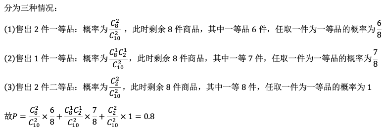 设商店有某商品10件,其中一等品8件,二等品2件,售出2件后,从剩下的8件中任取一件,求取得一等品的概率 作者:高老师 时间:2024-07-28 浏览 2 设商店有某商品10件,其中一等品8件,二等品2件,售出2件后,从剩下的8件中任取一件,求取得一等品的概率【正确答案】:【题目解析】: 📱 扫码体验刷题小程序 扫一扫使用我们的微信小程序