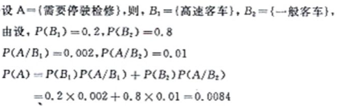 求该国道上有客车因发生故障需要停驶检修的概率 作者:高老师 时间:2024-07-28 浏览 0 设在某条国道上行驶的高速客车与一般客车的数量之比为1:4,假设高速客车因发生故障需要停驶检修的概率为0.002,一般客车因发生故障需要停驶检修的概率为0.01.求该国道上有客车因发生故障需要停驶检修的概率【正确答案】:【题目解析】:假设车辆总数是1,根据题意,高速客车就是0.2,一般客车就是0.8,所以告诉课程事故检修就是0.2×0.002=0.0004,一班客车就是0.8×0.01=0.008,两者加和=0.0084 📱 扫码体验刷题小程序 扫一扫使用我们的微信小程序