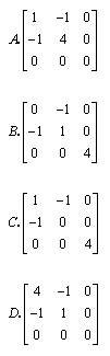f(x1,x2,x3)=x12-2x1x2+4x32对应的矩阵是() 作者:高老师 时间:2024-07-28 浏览 1 f(x1,x2,x3)=x12-2x1x2+4x32对应的矩阵是()A、见上B、见上C、见上D、见上【正确答案】:C【题目解析】:【答案解析】x1,x2,x3平方项系数对应主对角线元素:1,0,4。x1x2系数-2,对应a12和a21系数的和,a12=-1,a21=-1。 📱 扫码体验刷题小程序 扫一扫使用我们的微信小程序