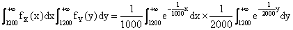 的指数分布.试求:(1)(X,Y)的概率密度;(2)E(X),E(Y);(3)两个电子元件的使用寿命均大于1200小时的概率.
