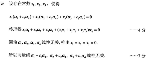 设向量组a1, a2, a3, a4,线性无关,证明:向量组a1+c1a4, a2+c2a4, a3+c3a4,线性无关(其中c 作者:高老师 时间:2024-07-29 浏览 2 设向量组a1, a2, a3, a4,线性无关,证明:向量组a1+c1a4, a2+c2a4, a3+c3a4,线性无关(其中c1, c2, c3是任意常数) .【正确答案】: 📱 扫码体验刷题小程序 扫一扫使用我们的微信小程序