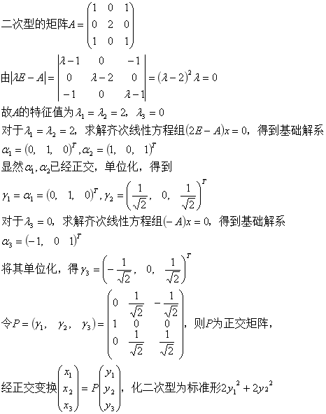 用正交变换二次型化为标准形,写出标准形和所作的正交变换。 作者:高老师 时间:2024-07-29 浏览 0 用正交变换二次型化为标准形,写出标准形和所作的正交变换。【正确答案】:【题目解析】: 📱 扫码体验刷题小程序 扫一扫使用我们的微信小程序