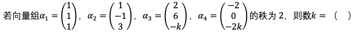 作者:高老师 时间:2024-07-29 浏览 1 A、1B、2C、3D、4【正确答案】:B【题目解析】:向量组的秩为2,说明4-2k=2-k=0,k=2。 📱 扫码体验刷题小程序 扫一扫使用我们的微信小程序