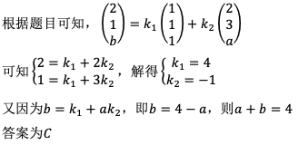 C、a+b=4