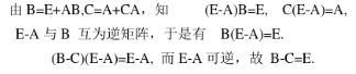 设A,B,C均为n阶矩阵,E为n阶单位矩阵,若B=E+AB,C=A+CA,则B-C=( ) 作者:高老师 时间:2024-07-29 浏览 0 设A,B,C均为n阶矩阵,E为n阶单位矩阵,若B=E+AB,C=A+CA,则B-C=( )A、EB、-EC、AD、-A【正确答案】:A【题目解析】: 📱 扫码体验刷题小程序 扫一扫使用我们的微信小程序
