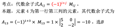 行列式中元素4的代数余子式等于( ) 作者:高老师 时间:2024-07-29 浏览 1 行列式中元素4的代数余子式等于( )A、-40B、-10C、10D、40【正确答案】:B【题目解析】:。 📱 扫码体验刷题小程序 扫一扫使用我们的微信小程序