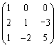 ,第一列乘以-2加到第二列,第一列乘以-3加到第三列,得