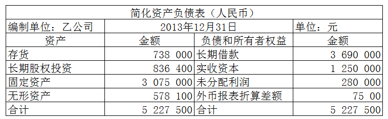 要求:根据我国企业会计准则规定,填列乙公司折算后的简化资产负债表。