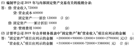 (1)编制甲公司2019年与内部固定资产交易有关的抵销分录;