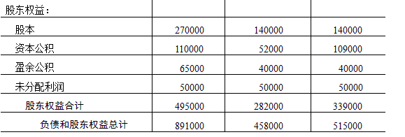 【正确答案】:本题属于非同一控制下的多次交换交易实现的吸收合并。(1)A公司的合并成本=75000+168000=243000(元)(2)A公司合并日的会计分录:借:银行存款 56000 应收账款 42000 存货 112000 长期股权投资 40000 固定资产 215000 无形资产 50000 贷:应付账款 52000 其他应付款 10000 长期借款 73000 应付债券 41000 长期股权投资—B公司 75000 银行存款 168000 营业外收入 96000(3)合并后A公司的资产总额=(891000-243000)+515000=1163000(元) 负债总额=396000+176000=572000(元) 所有者权益总额=1163000-572000=591000(元)