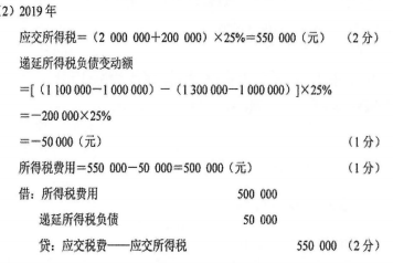 (2)计算甲公司2019年应交所得税、递延所得税和所得税费用并编制相关会计分录。