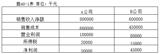 A与B两公司是同行业的两个制造企业,A与B公司2020年度利润表部分数据如题40-1表所示。(设销售收入净额与销售收入相等)