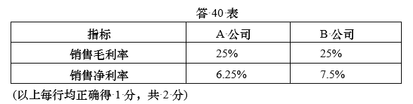 (2)根据以上数据,计算A与B公司2020年销售毛利率、销售净利率,将计算结果直接填入题40-2表中;(计算结果以百分比表示,不用列出计算过程)