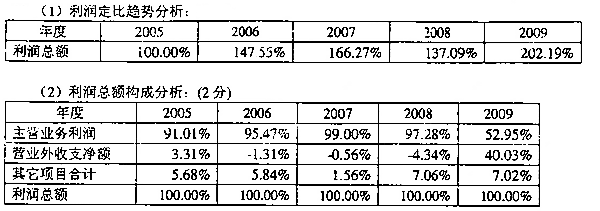 2005年到2007年的利润总额稳步增长,主要原因是主营业务利润的增长:但2006~ 2008年间营业外收支有下降的趋势,而2009年扭转了这种局面,利润总额大幅增加,主要是因为营业外收支净额大增,但主营业务利润很不理想,应进一步查明原因。
