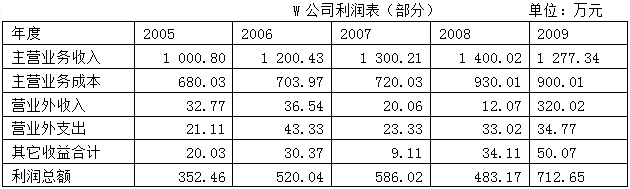 (1)对W公司“利润总额”项目进行定比趋势分析;