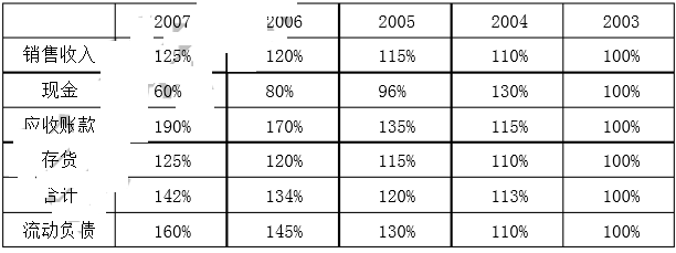 要求:(1)将销售收入、资产及负债的各项资料以趋势百分比表示,以2003年为基期。 (计算结果取整数) (2)评述分析的结果。