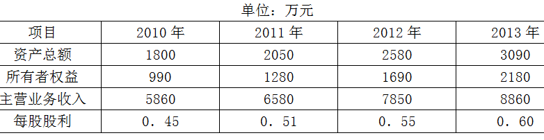 丁公司2010年至2013年有关的财务数据如下表: