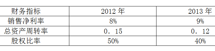 (1)2012年的总资产收益率=8%*0.15=1.2%