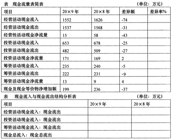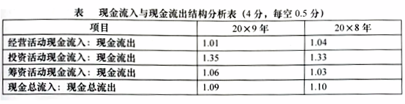 (2)将现金流入与现金流出结构分析表空白部分补充完整,并对现金流量表进行结构分析。