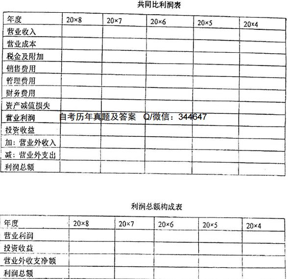 要求:(1)编制该公司共同比利润表和利润总额构成表。