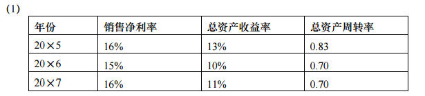 (2)该公司总资产收益率在20×6年减少后在下一年度有所回升,其原因在于总资产周转率的下降以及销售净利率的变动,但是销售净利率的变动所带来的影响没有总资产周转率变动所带来的影响大。
