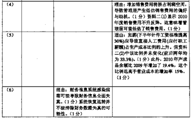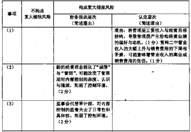 资料一:通过了解X公司及其环境,A注册会计师获悉X公司所属行业2010年的营业收入普遍比上年增长12%,但毛利率基本保持稳定。X公司的经营模式、生产技术等均与上年基本相同,但经营业绩比上年有较大幅度提升。具体情况如下:(1)2010年末,X公司除了向管理层发放了人均6万元的保底年薪外,还实现了营业收入比上年增长20%、毛利率比上年增长3.5%的目标,还按约定向高级管理人员发放了人均20万元的奖励性工资。(2)为实现经营目标,X公司更换了部分高级管理人员。新的领导班子上任后,将公司经营理念由原先的“诚信为本、强化管理”改为“业绩为主、效益至上”。(3)为提升对经营业绩和财务信息的监督层次,精简管理人员,经董事会特别会议批准,X公司在治理层增设了监事会,取消了原对管理层直接报告的审计部门。(4)为实现经营目标,X公司2010年大幅增加了海外电视广告费用和其他与营销相关的费用,以保持老客户和发展新客户。(5)2010年后半年,X公司所在地企业普遍上调了职工的最低工资界限。X公司劳资双方协商后,从2010年7月份起将生产部门职工的计件工资普遍上调了30%。(6)2010年9月,因X公司专职信息管理部门相关职员的工作失误,公司计算机系统感染病毒。该事项没有给X公司造成重大经济损失,财务信息系统在病毒入侵后的第三天就已恢复正常运行。