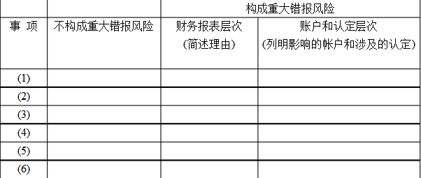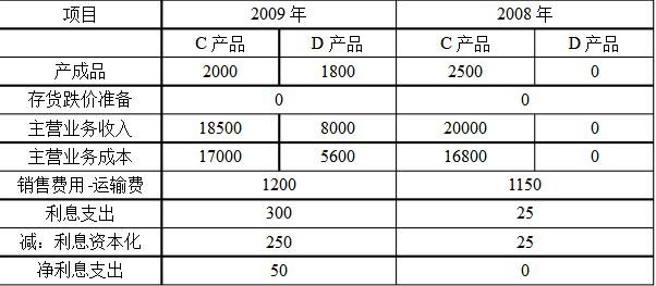 资料二:A和B注册会计师在审计工作底稿中记录了所了解的W公司及其环境的情况,部分内容摘录如下: (1)在2008年度实现销售收入增长10%的基础上,W公司董事会确定的2009年销售收入增长目标为20%,W公司管理层薪酬直接与业绩挂钩。W公司所处行业2009年的销售增长率是12%。 (2)W公司财务部门工作压力较大,会计人员流动频繁,会计人员的平均服务期少于2年。 (3)由于市场竞争激烈,W公司于2009年4月将主要产品(C产品)的销售额下调了8%至10%。另外,W公司在2009年8月推出了D产品(C产品的改良型号),市场表现良好,计划在2010年全面生产D产品,并停止C产品的生产,预计在2010年将库存C产品至少降价10%以上才能销售出去。 (4)W公司销售的产品均由经客户认可的外部运输公司实施运输,运输由W公司承担,由于受能源价格上涨影响,2009年的运输单价比上年平均上升了15%,但运输商同意将运费结算周期适当延长。 (5)2009年度W公司主要原料的价格与上年基本持平,但由于技术要求发生变化,D产品所耗高档金属材料比C产品略有上升,使得D产品的原材料成本比C产品上升了0.3%。 (6)除了于2008年12月借入的2年期、年利率6%的银行借款5 000万元外,W公司没有其他借款。上述长期借款专门用于扩建现有的一条生产线,以满足D产品的生产需要。该生产线总投资6 500万元,2008年12月开工,2009年7月完工投入使用。(假设不考虑利息收入) 要求:针对资料二(1)至(6)项,结合资料一,假定不考虑其他条件,请逐项指出资料二所列事项是否可能表明W公司存在重大错报风险。如果认为存在,并分别说明该风险是属于财务报表层次还是认定层次。如果是属于财务报表层次,简述理由。如果认为属于认定层次,请指出相关事项与何种交易或账户的何种认定相关。请将答案直接填入下列表格内。
