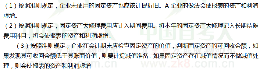 某审计师2010年1月12日开始对A公司2009年度会计报表进行审计。在审计到固定资产时发现,A公司已经采用了新的会计准则,但在 作者:高老师 时间:2024-07-29 浏览 1 某审计师2010年1月12日开始对A公司2009年度会计报表进行审计。在审计到固定资产时发现,A公司已经采用了新的会计准则,但在固定资产的核算中存在以下问题: (1)未使用固定资产没有计提折旧; (2)本年的固定资产大修理费用计入了“长期待摊费用”科目; (3)没有按规定考虑提取固定资产减值准备。 【要求】请分析上述事项会计处理是否正确,如果不正确将会给报表造成什么影响?【正确答案】: 📱 扫码体验刷题小程序 扫一扫使用我们的微信小程序
