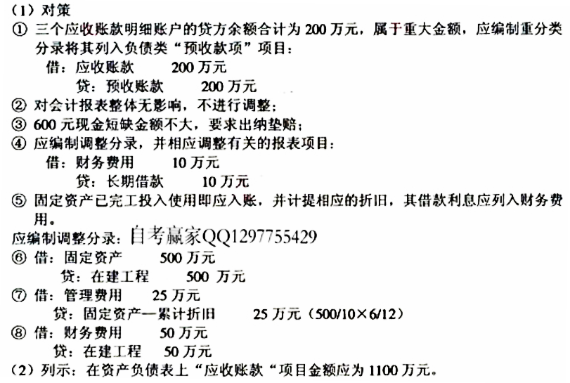 (1)资产负债表应收账款项目金额为900万元,应收账款总账为借方余额900万元,而应收账款明细账中有三家客户的余额为贷方余额,分别为50万元、60万元和90万元,该企业没有预收账款项目;