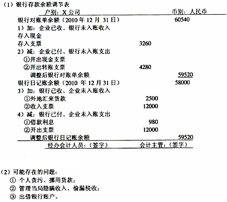 (2)企业12月28日开出转账支票一张,金额4280元,银行未入账;