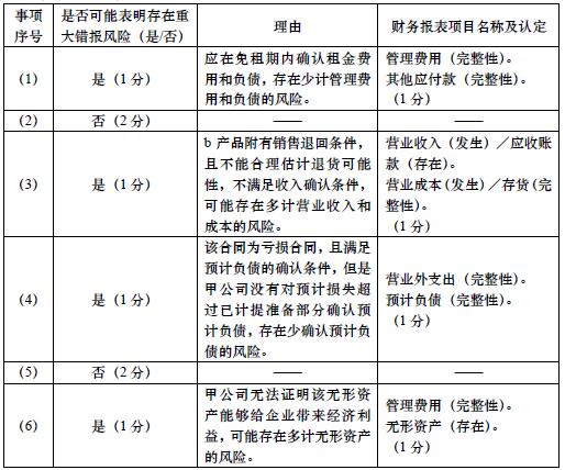 (要求)针对资料一第⑴至⑹项,结合资料二,假定不考虑其他条件,逐项指出资 料一所列事项是否可能表明存在重大错报风险。如果认为可能表明存在重大错报风险,简要说明理由,并说明该风险主要与哪些财务报表项目的哪些认定相关(不考虑税务影响将答案直接填入相应的表格内。