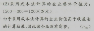 待估企业未来5年的预期收益额分别为100万元、105万元、110万元、120万元和125万元,假设折现率与资本化率均为10%;该 作者:高老师 时间:2024-07-29 浏览 0 待估企业未来5年的预期收益额分别为100万元、105万元、110万元、120万元和125万元,假设折现率与资本化率均为10%;该企业各单项可确指资产评估值之和为1500万元,负债为300万元。要求:(1)釆用年金资本化法计算该企业整体资产评估值。(计算结果以“万元”为单位,小数点后保留两位小数)(2)判断该企业是否有商誉,如果有,请计算金额;如没有,请说明理由。【正确答案】: 📱 扫码体验刷题小程序 扫一扫使用我们的微信小程序