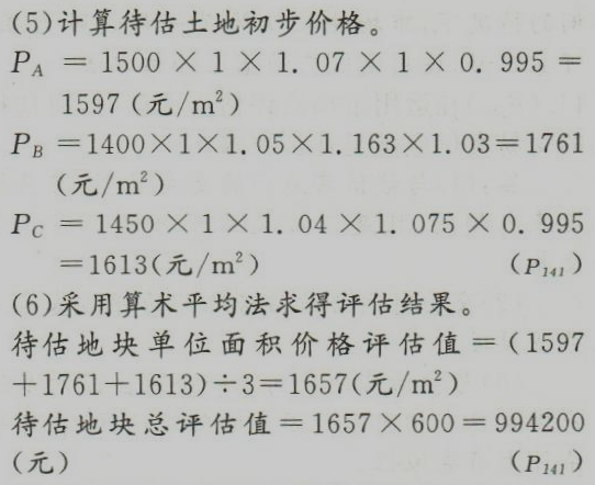 解:(1)进行交易情况修正。从评估人员的调查中未发现交易实例的交易有什么特殊情况,均作为正常交易看待,故无需修正。