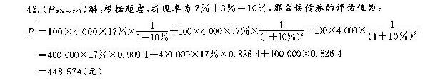 被评估债券为三年期非上市债券,年利率为17%。按年付息,到期还本,面值100元,共400O张。评估时债券购人已满一年,第一年利息 作者:高老师 时间:2024-07-29 浏览 0 被评估债券为三年期非上市债券,年利率为17%。按年付息,到期还本,面值100元,共400O张。评估时债券购人已满一年,第一年利息已作投资收益入账,评估时一年期国库券利率为7%,经过分析确定债券发行企业的风险报酬率为3%。要求:计算该非上市债券的评估值。【正确答案】: 📱 扫码体验刷题小程序 扫一扫使用我们的微信小程序