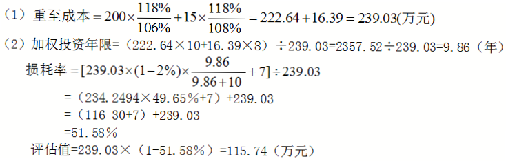 (2)计算该设备的有形损耗(或成新率)及评估值。(计算结果以“万元”为单位,保留两位小数)
